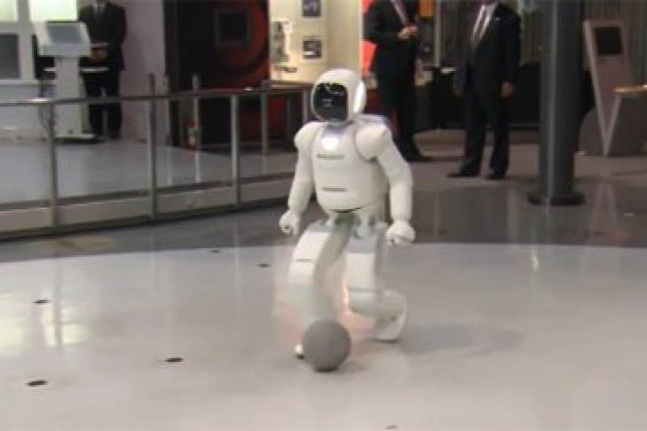Обама признался, что ASIMO «был пугающе похож на настоящего человека», когда заявил американскому политику, что умеет играть в футбол, и в подтверждение своих слов ударил ногой по мячу.