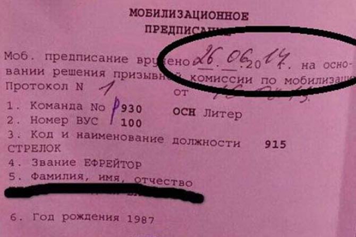 «Никаких объяснений не последовало. Но поскольку Россия не находится в состоянии войны, получатели подозревают, что их могут направить на Юго-восток Украины защищать новообразованный союз Луганской и Донецкой республик», - написал «резервист» в своем блоге.