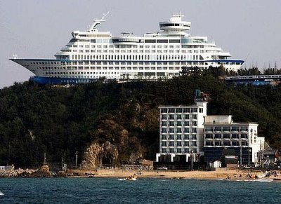 Огромный «сухопутный» корабль Sun Cruise Resort and Yacht расположен в одном из живописнейших мест на восточном побережье Южной Кореи в городке Джеонгдонгжин.