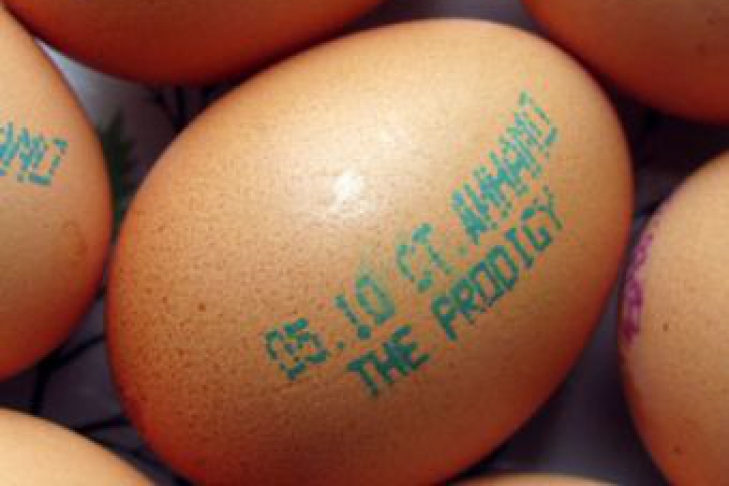 На части куриных яиц, продающихся в белорусских магазинах, появилась надпись: «05.10 ст. Динамо The Prodigy». Концерт британской группы действительно состоится 5 октября на минском стадионе «Динамо» в рамках фестиваля UltraMusicFеstival.