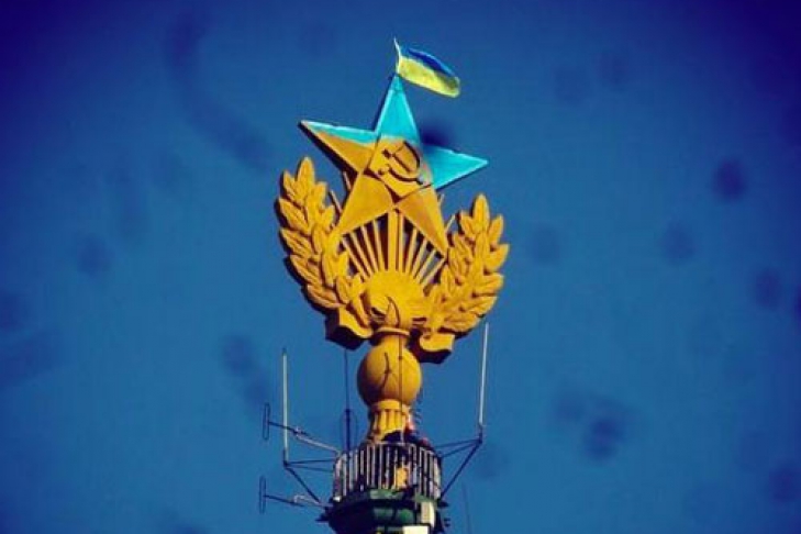 Кроме того, неизвестные перекрасили звезду в цвета украинского флага