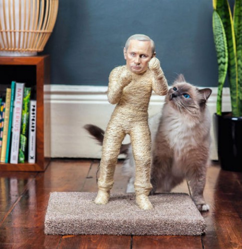 Так, авторы продукта решили придать когтеточке для котов необычную форму: тело президента Российской Федерации Владимира Путина в знак протеста против ограничения свободы интернета для граждан РФ.