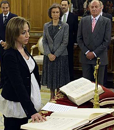 Назначение Чакон, которая в прошлом кабинете была министром жилья, на пост военного министра стало для многих неожиданностью. Тем более, что она находится на седьмом месяце беременности.