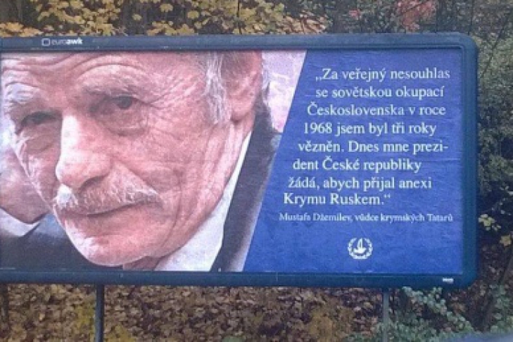 На улицах Праги появились билборды с лидером крымских татар Мустафой Джемилевым, который упрекает президента Чехии Милоша Земана.