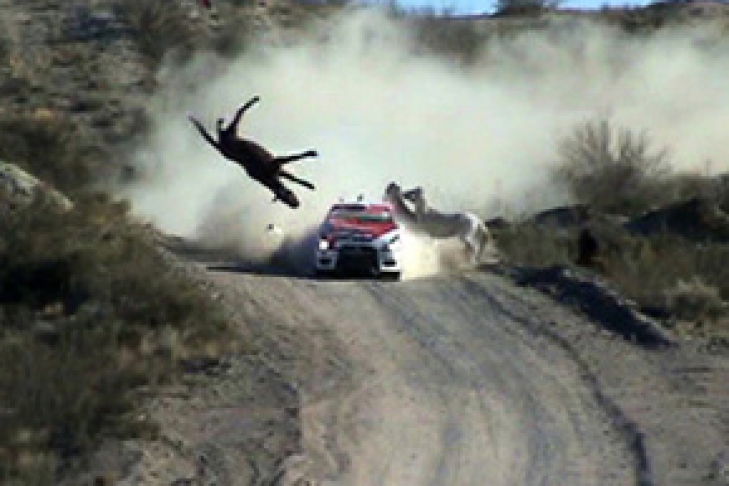 В Латинской Америке во время «Аргентинского ралли» автомобиль гонщика Федерико Виллагры врезался в лошадей прямо на трассе.