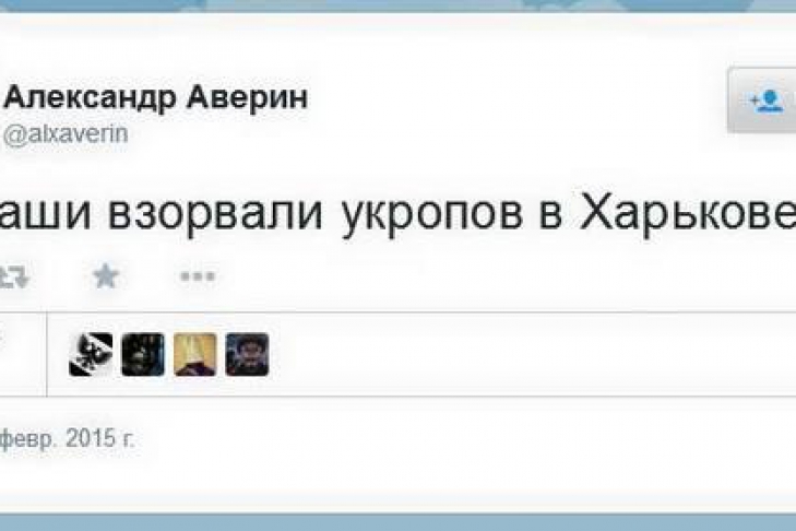 "Пресс-секретарь Лимонова Аверин не может скрыть радости от смерти людей, о чем и пишет в Твиттере. Видимо, считает убийство людей лучшим подарком Лимонову к его дню рождения.