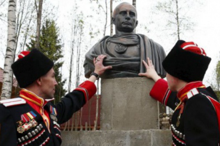 В пригороде Санкт-Петербурга казачий союз установил памятник президенту РФ Владимиру Путину, который изображен в образе римского императора.