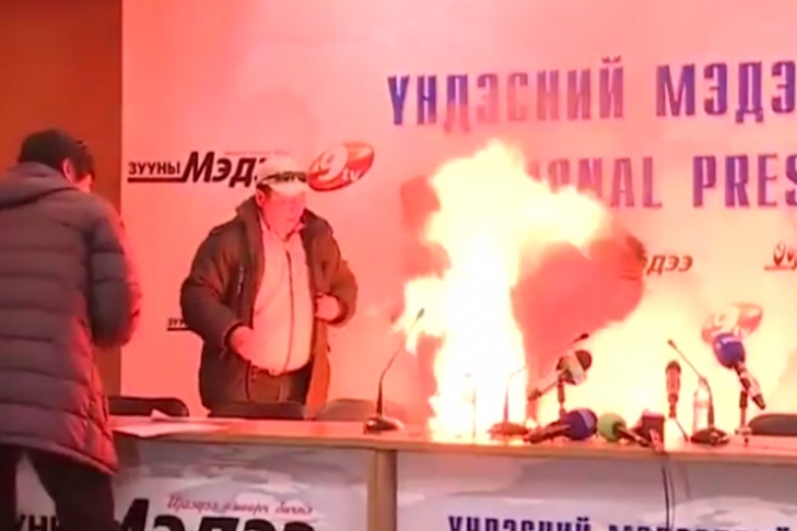 В Монголии глава профсоюза совершил самосожжение прямо на пресс-конференции (ВИДЕО)