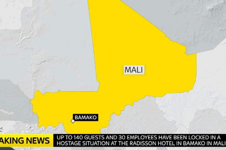 Около десятка террористов захватили в Бамако, столице африканской страны Мали, 170 заложников в отеле Radisson Blu. Об этом сообщает Sky News.