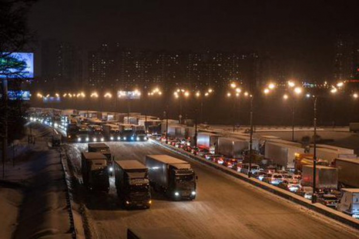 Город рискует быть в заблокированным. Автомашины едут с севера и юга. Предполагается, что к 10 утра понедельника они выедут на московскую кольцевую автодорогу и произведут на ней блокировку движения.
