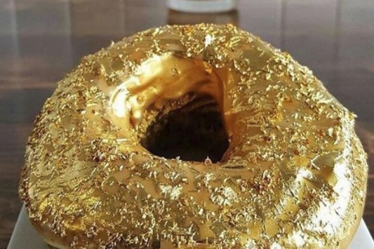 Пончик сделан с использованием элитного шампанского Cristal и покрыт хлопьями 24-каратного золота. Стоимость десерта достигает $100.