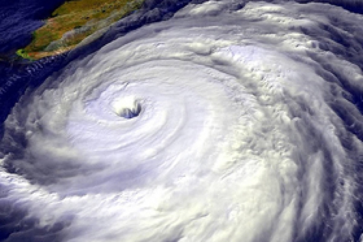 Тайфун движется со скоростью 25 км в час. Сила ветра в центре атмосферной воронки достигает 70 метров в секунду.