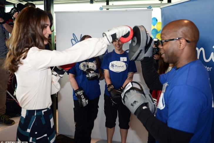 Герцогиня Кембриджская Кейт примерила боксерские перчатки в рамках благотворительной кампании, посвященной вопросам психического здоровья, пишет Daily Mail.