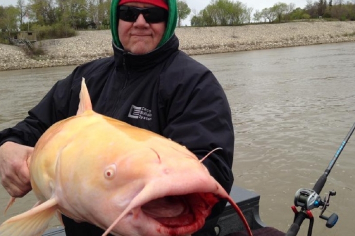 В канадской реке Ред-Ривер поймали огромного сома-альбиноса, сообщает CBC со ссылкой на владельца компании Blackwater Cats Outfitter Донована Пирейза.