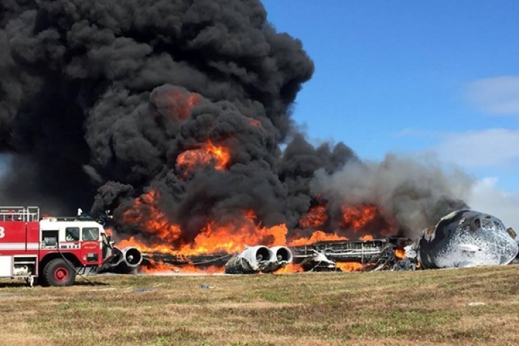 В-52 упал и загорелся. Столб дыма над аэродромом виден за несколько сотен метров.