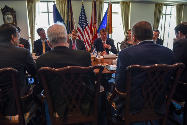 Министр обороны Израиля Авигдор Либерман встретился сегодня в Вашингтоне с министром обороны США Эштоном Картером. На встрече, которая прошла в дружественной атмосфере, главы оборонных ведомств двух стран обсудили вопросы, представляющие взаимный интерес, в частности, борьбу с глобальным терроризмом и ситуацию на Ближнем Востоке, а также целый ряд тем, касающихся двусторонних отношений.