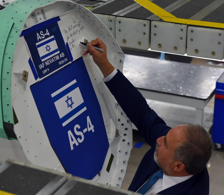 Рядом с табличкой с обозначением места базирования самолета, который в Израиле получил наименование «Адир», Авигдор Либерман написал: «Лучший самолет для лучших летчиков».