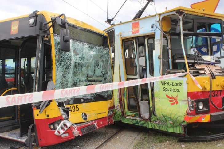 В крупном польском городе Лодзь произошло столкновение автобуса и трамвая, в результате которого пострадали 25 человек, пишет издание Dziennik Łódzki.