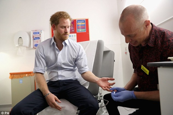 На опубликованном снимке запечатлено, как принц сдает новейший экспресс-тест на ВИЧ. Сотрудник больницы Сент-Томас в Лондоне сделали 31-летнему Гарри укол в палец и взял кровь. Результат был готов через пару минут. Пятый наследник британского престола оказался здоровым.