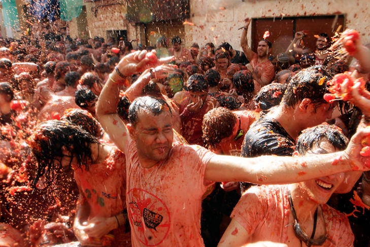 В ежегодном празднике Tomatina, проходящем в пригороде Валенсии, где метательным оружием выступают помидоры, приняли участие несколько тысяч испанцев и иностранцев, сообщает Sun Sentinel.
