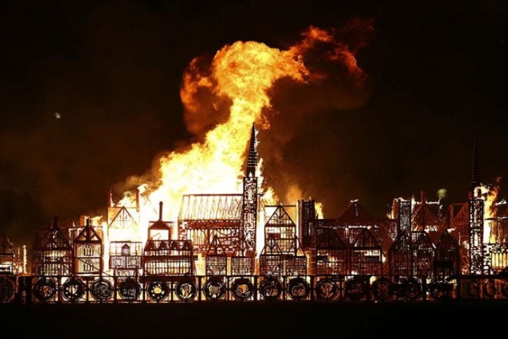 Художественная реплика города той поры была установлена на плавучей платформе. Организатором шоу стала компания Artichoke, проводившая шестидневную акцию London Burning.