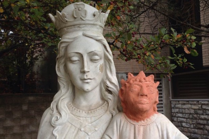 Статуе девы Марии с младенцем Иисусом постоянно не везло: вандалы регулярно сбивали голову младенца и бросали ее на землю. Но год назад они, видимо, забрали ее с собой, и безголовый Иисус удручающе действовал на прихожан местной церкви.