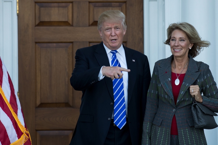 "Бетси Девос является блестящим и страстным защитником образования. Под ее руководством мы будем реформировать систему образования в США. Мы сможем предоставить американским семьям первоклассное образование", — приводятся слова Трампа в заявлении, распространенном его переходной администрацией.
