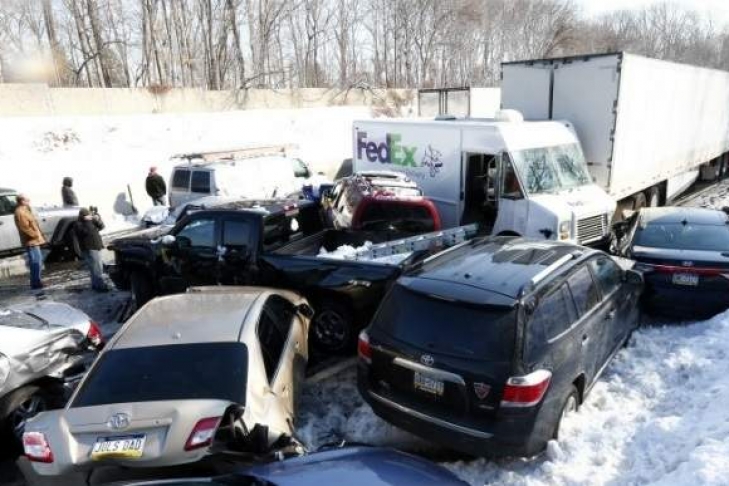 В США в штате Пенсильвания из-за сильного снегопада и гололёда на дорогах столкнулись 59 автомобилей, передает CNN.