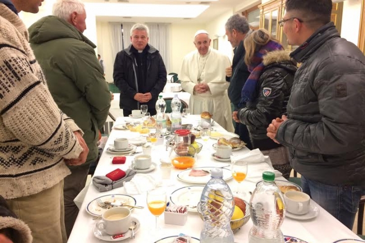 Папа Римский по случаю своего 80-летнего юбилея пригласил на завтрак восьмерых бездомных