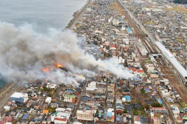Пожар, вспыхнувший в ресторане, распространился из-за сильного ветра на 140 зданий в городе Итоигава на побережье Японского моря