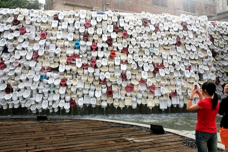 В одной из китайских провинций есть город Фошань. Там находится один из самых странных экземпляров современного стрит-арт искусства - водопад из 10,000 туалетов, раковин и писсуаров. Об этом сообщает ABCnews.