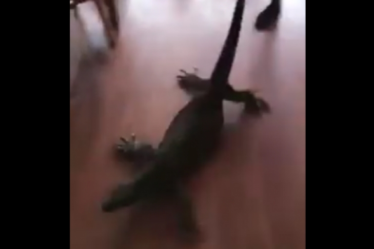 Бесстрашная официантка вытащила за хвост крупного варана из ресторана (видео)