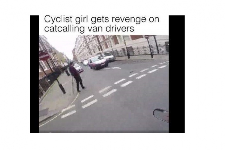 В Лондоне на светофоре, мужики на "бусике" стали приставать к велосипедистке.