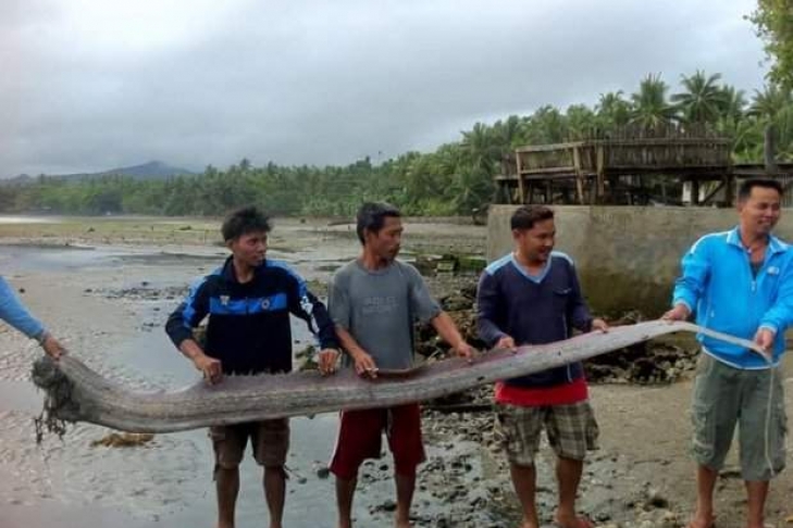 На островах поймали рыбу, которая и породила столько легенд о морском чудовище. Ее официальное название – селедочный король хохлатый. Эта самая длинная из костных рыб живет далеко от берега: из семьи Ремнетелых (Regalecidae), ряда Лампридоподобных (Lampriformes). Селедочный король хохлатый или ремень-рыба живет на глубинах до 1000 метров. Об этом сообщает 24tv.
