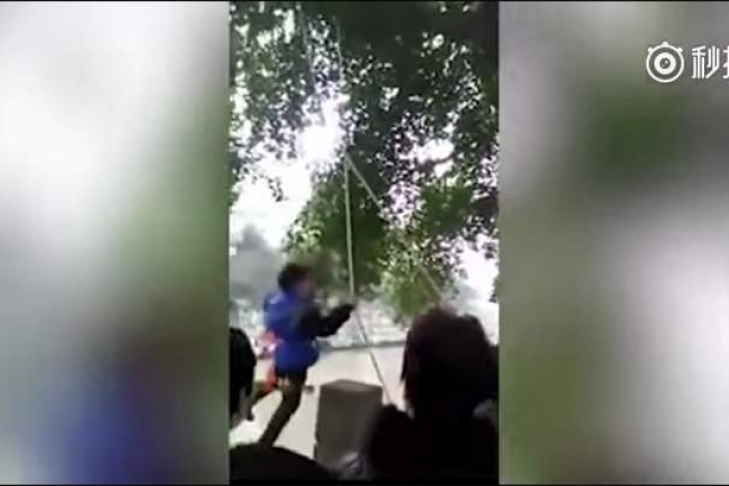 Видео происшествия, снятое в городе Мэйшань провинции Сычуань на юго-западе Китая, появилось в Интернете 27 февраля. На записи видно, как отец привязывает ребенка веревкой и сталкивает его вниз с парапета к воде.