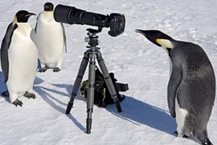 Фотограф Давид Шульц находится в Антарктиде в составе экспедиции. В один из дней он заметил, как один пингвин смотрит в видоискатель объектива, в то время как двое других его сородичей как бы позируют для фотографии.