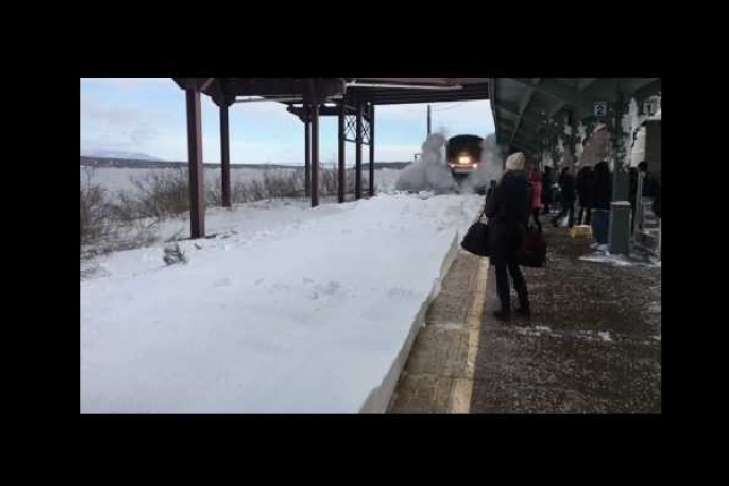 Прибывающий поезд зрелищно засыпал снегом людей на перроне (видео)