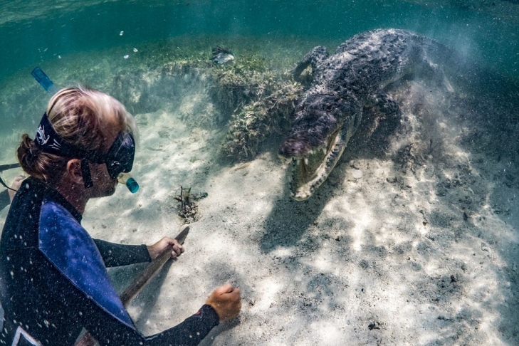 Трейс рассказал, что рядом с ними находился укротитель, который отталкивал крокодилов, если те подплывали слишком близко к людям.