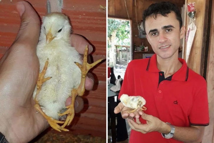 Бразильский фермер Дин Лима (Dienes Lima) опубликовал видео, на котором цыплёнок с четырьмя лапками бегает по курятнику. Об этом сообщает "Мир Фактов".
