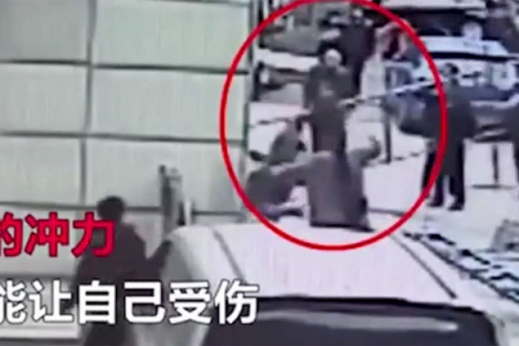 В Китае бывший каскадер и чемпион по у-шу спас упавшего с высоты третьего этажа рабочего, поймав его руками.
