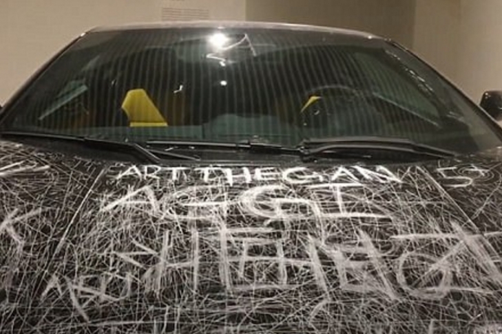 Посетители нацарапали на боках и капоте автомобиля цифры, кто-то признания в любви. На спорткаре даже появилось название чешской автомобильной компании Skoda.