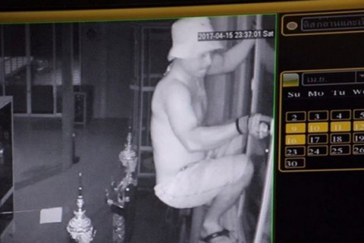 Преступление было совершено в буддийском храме Ват Бунсри Муникорн в Бангкоке. На записях с установленных внутри помещения камер наблюдения видно, как неизвестный мужчина примерно полчаса ходит по храму, а затем простирается ниц перед статуей Будды.