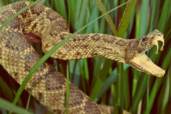 Водитель не пострадал, змея промахнулась и, увы, к тому же попала под колеса автомобиля с видеорегистратором.