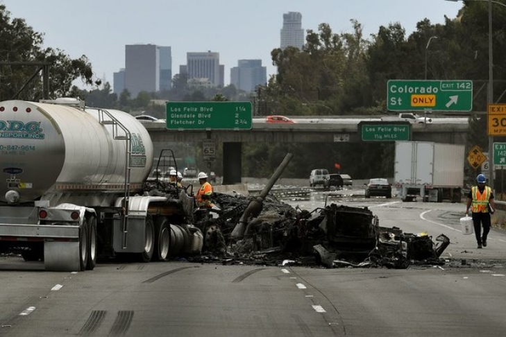 Чудовищная авария в Лос-Анджелесе: столкнулись бензовозы