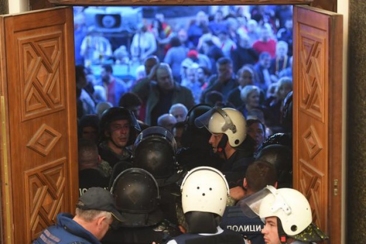 Нападения протестующих начались после того, как социал-демократы и партии, представляющие албанское нацменьшинство, выбрали нового председателя парламента - этнического албанца Талата Джафери.