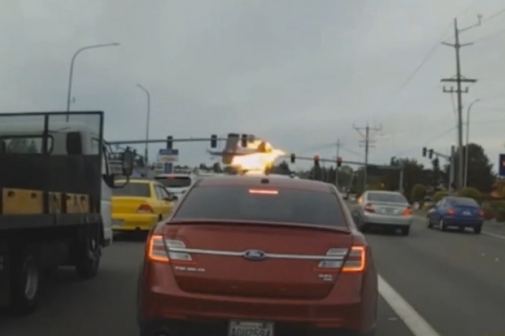 Самолет взорвался над оживленной трассой в Сиэтле (видео)