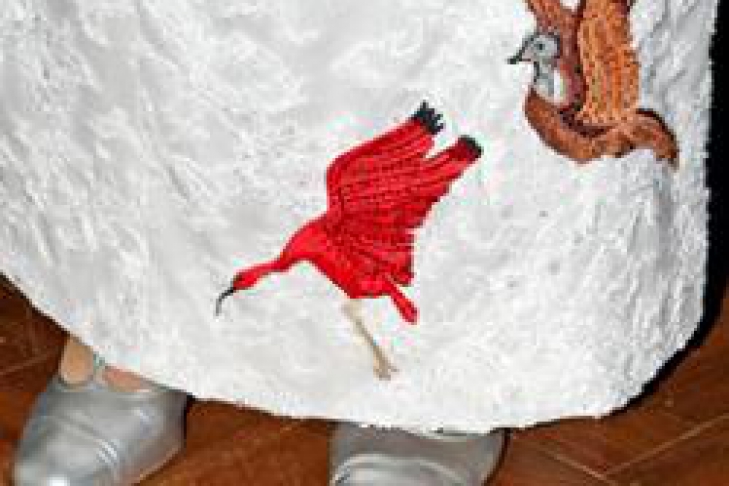 Как сообщают очевидцы, лидеры многочисленных стран были поражены, когда в минувшую пятницу в зал, где проходил торжественный ужин, вошла Елизавета II в необычном для монарха наряде. Подол ее белоснежного кружевного платья украшали две яркие птицы - ибис и чачалака, относящаяся к семейству куриных. Они являются символами Тринидада и Тобаго.