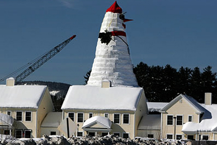 Гигантский, почти восьмиметровый снеговик по прозвищу Сноузилла ежегодно появляется и во дворе дома одного из жителей Аляски - несмотря на запрет местных властей.
