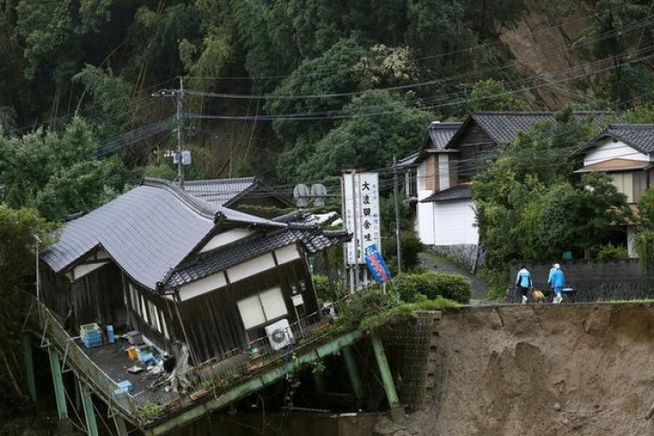 Из-за проливных дождей (за час в префектуре выпало 100 миллиметров осадков) возникла серьезная угроза оползней и паводков.