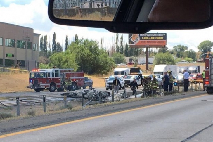 В ведомстве также сообщили, что самолет упал на автомобильную дорогу федерального значения I-15. Из-за инцидента и разбросаны обломки на месте происшествия автостраду пришлось перекрыть.